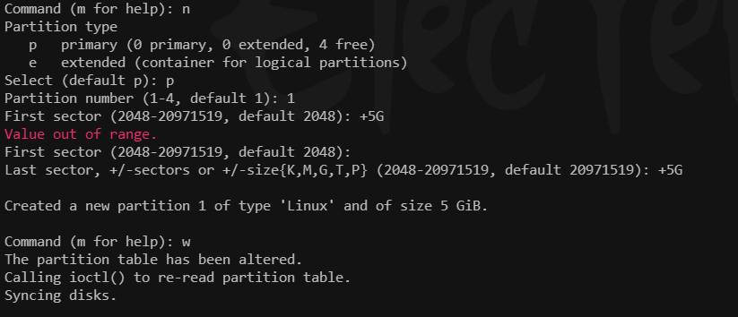 输入fdisk /dev/sdb,回车,然后输入m,回车