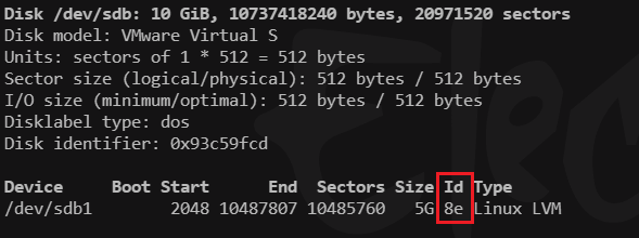 磁盘分区之后,磁盘id为83,如果要使用逻辑卷管理,需要将id改为8e,才能创建物理卷。