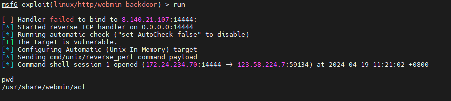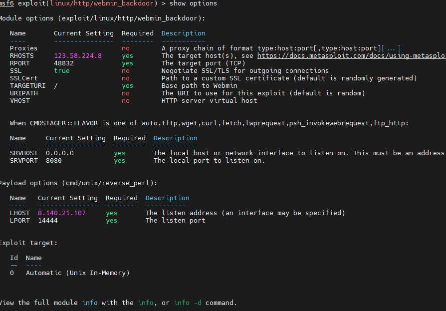 启动vps上的msf,进入命令行模式,搜索webmin相关的poc